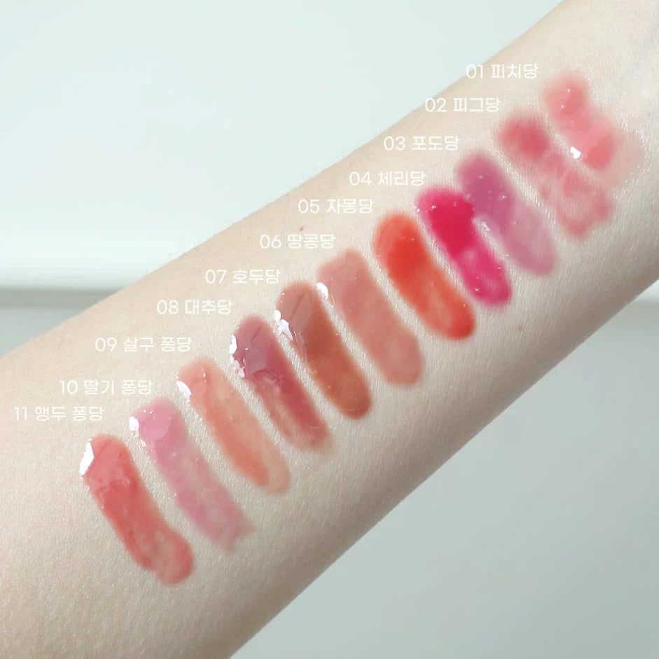 The BBIA Over Glaze 4.5g is a Korean lip gloss that offers a fresh translucent tint and a glossy finish, providing a light plumping effect. Its hydrating formula layers beautifully without a sticky feeling, creating a brighter shade and making the lips appear fuller. The product is available in 11 shades, including: