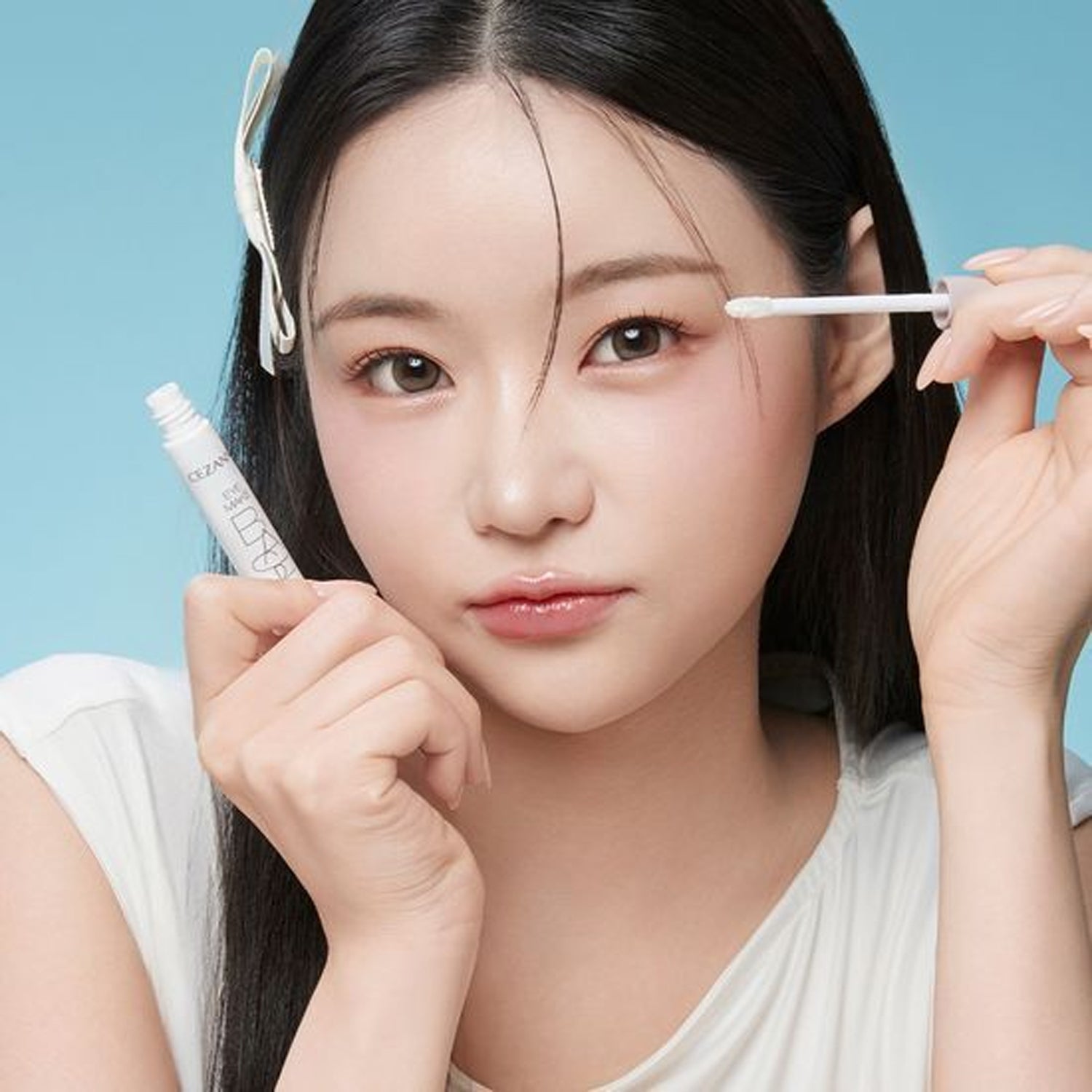 - Apply the product to the tip and spread it over your eyes.