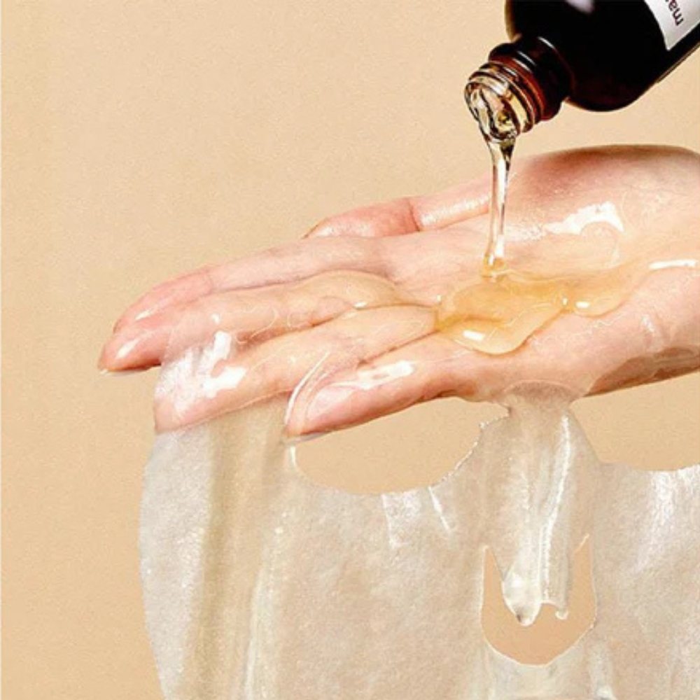 After cleansing the skin, perform the toning step. Then open the bag and remove the upper and lower layers. Apply the mask with the embossed side to the skin of the face, carefully smooth it in all areas. After about 20 minutes, remove and lightly tap with your fingers to absorb any remaining essence.