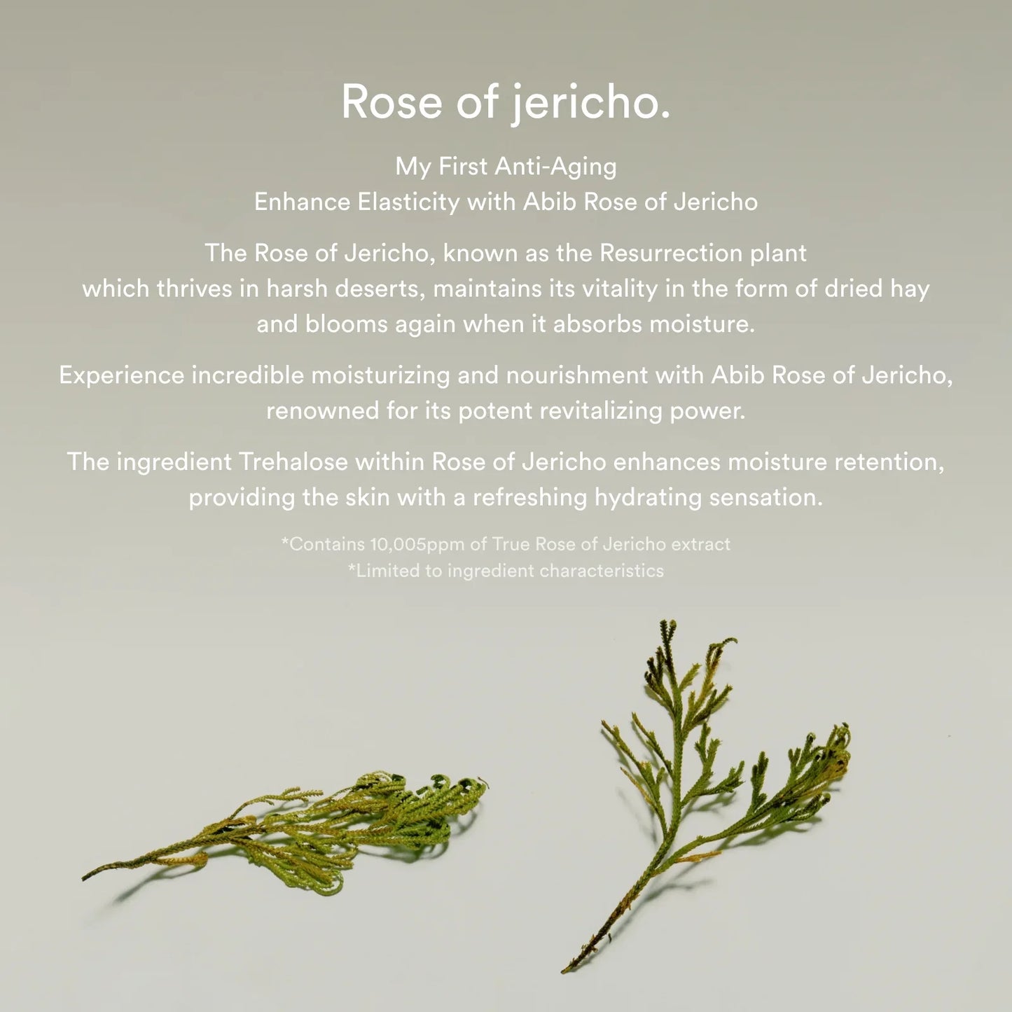 - Formulated with Rose of Jericho derived from deserts, Trehalose and Hyaluronic Acid which help provide moisture to the skin.