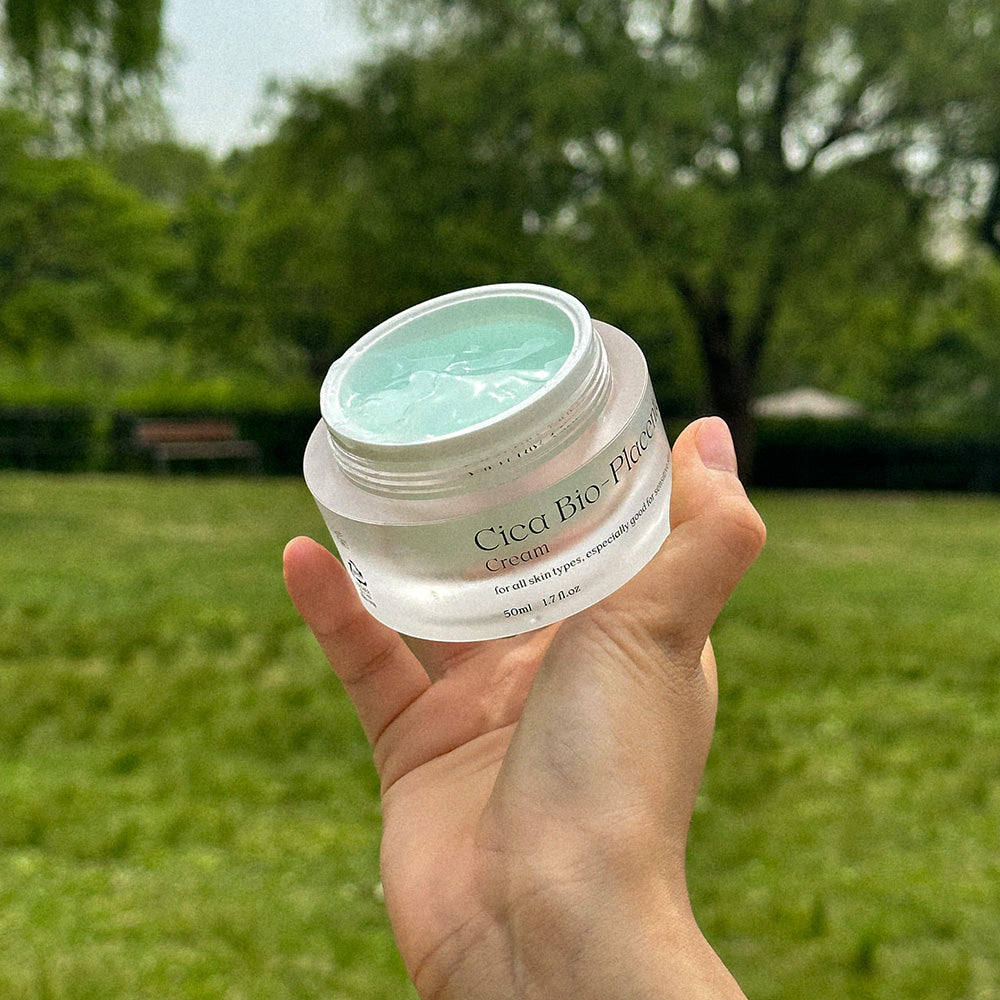 1. Take a small amount of the Cica Bio-Placenta Cream and apply it to your face.