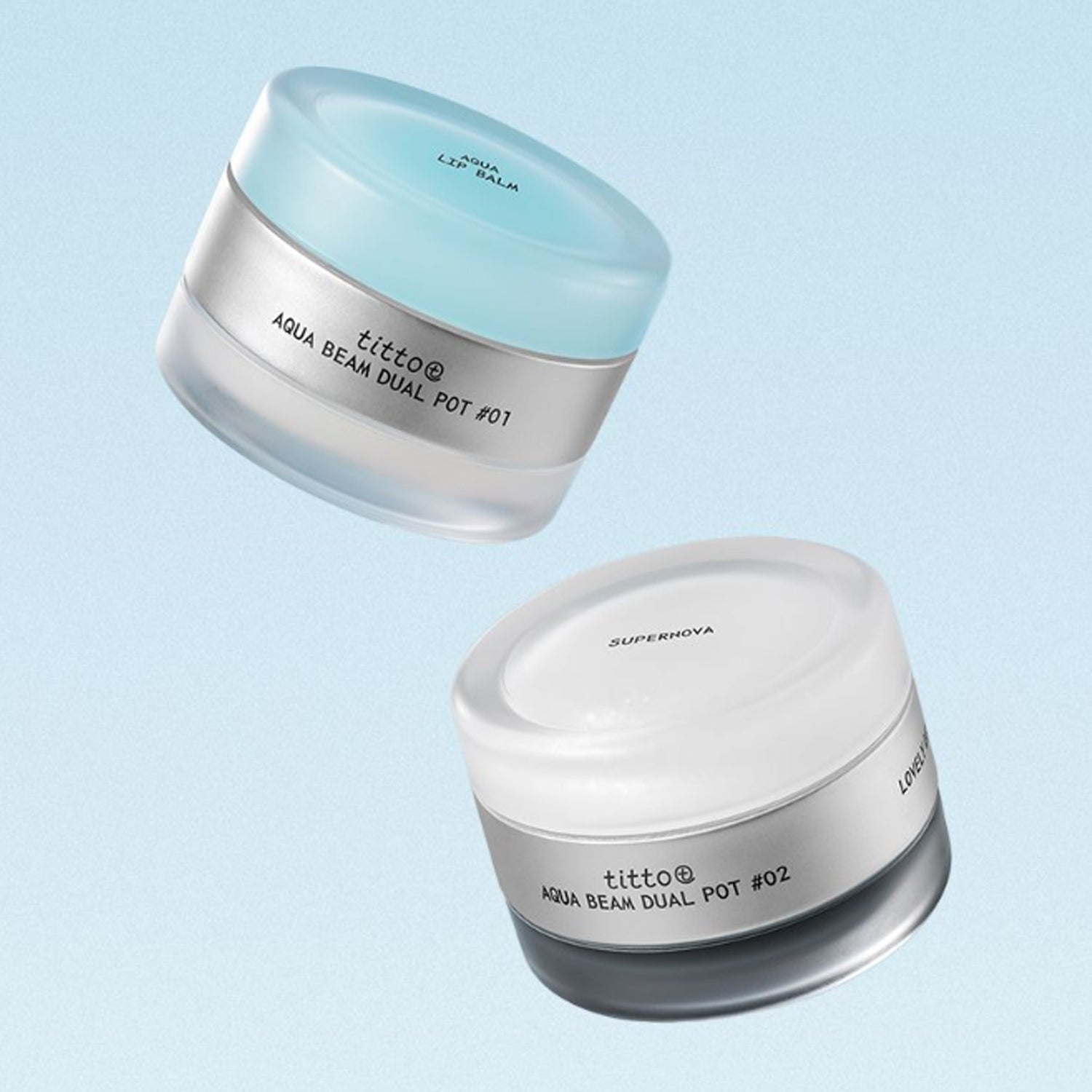 - [Aqua Beam Dual Pot #01] Aqua Lip Balm: Hydrogenated polyisobutene, polyglyceryl-2 triisostearate, phytosteryl/isostearyl/cetyl/stearyl/behenyl dimer dilinoleate, microcrystalline wax, hydrogenated polydecene, tocopheryl acetate, hydrogenated castor oil isostearate, synthetic wax, caprylic/capric triglyceride, ethylene/propylene/styrene copolymer, dimer dilinoleyl dimer dilinoleate, sodium hyaluronate, silica dimethyl silylate, polyhydroxystearic acid, dimethicone, lecithin, isostearic acid, isopropyl myristate, ethylhexyl Palmitate, Butylene/Ethylene/Styrene Copolymer, Polyglyceryl-3 Polyricinoleate, Pentaerythrityl Tetra-di-t-butyl Hydroxyhydrocinnamate, Purified Water, Butylene Glycol, 1,2-Hexanediol, Dimethylsilanol Hyaluronate, Hydrolyzed Sodium Hyaluronate, Hydrolyzed Hyaluronic Acid, Potassium Hyaluronate, Hyaluronic Acid, Sodium Hyaluronate Crosspolymer, Hydroxypropyl Trimonium Hyaluronate, Sodium Hyaluronate Dimethylsilanol, Sodium Acetylated Hyaluronate, Fragrance, Dehydroacetic Acid, Blue No. 1, Linalool, Limonene [Tito Aqua Beam Dual Pot #01] Shine Beam Plumper: Hydrogenated polyisobutene, polyglyceryl-2 triisostearate, phytosteryl/isostearyl/cetyl/stearyl/behenyl dimer dilinoleate, microcrystalline wax, hydrogenated polydecene, tocopheryl acetate, hydrogenated castor oil isostearate, synthetic wax, vanillyl butyl ether, caprylic/capric triglyceride, ethylene/propylene/styrene copolymer, dimer di Linoleyl Dimer Dilinoleate, Silica Dimethyl Silylate, Menthyl Lactate, Mica, Polyhydroxystearic Acid, Dimethicone, Titanium Dioxide, Lecithin, Isostearic Acid, Isopropyl Myristate, Ethylhexyl Palmitate, Butylene/Ethylene/Styrene Copolymer, Polyglyceryl-3 Polyricinoleate, Pentaerythrityl Tetra-di-t-butyl Hydroxyhydrocinnamate, Dehydroacetic Acid